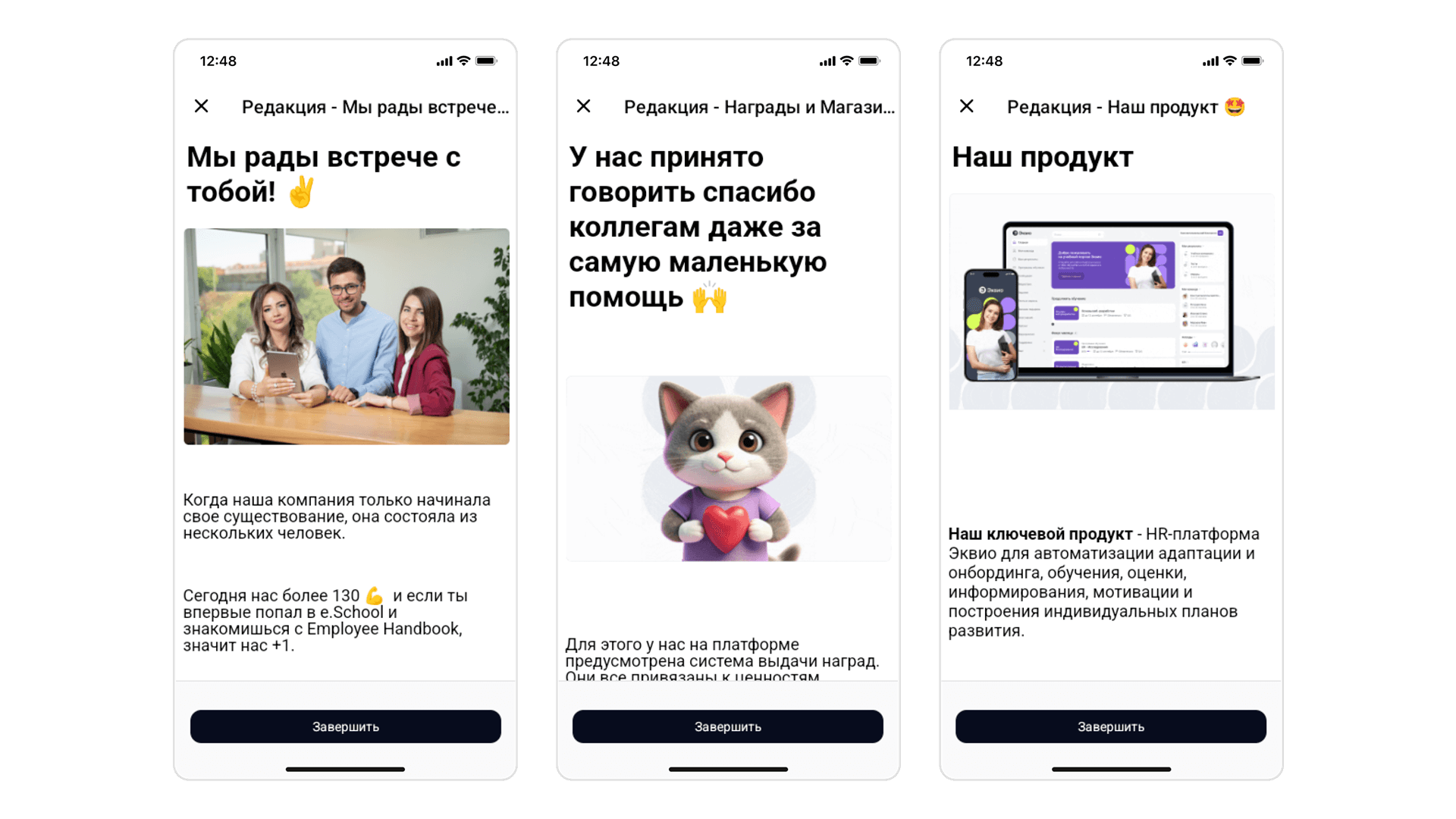 В качестве инструмента для организации welcome-тренинга можно использовать платформу Эквио.