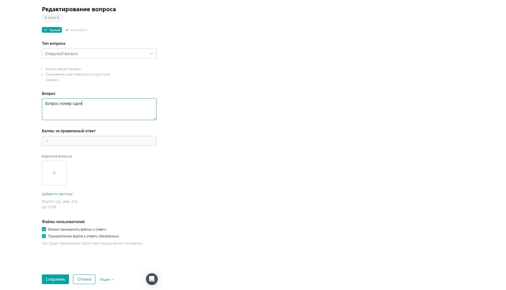 - Если для вопроса стоит настройка, что файл прикладывать обязательно – на кнопке добавления файла отображается «*».