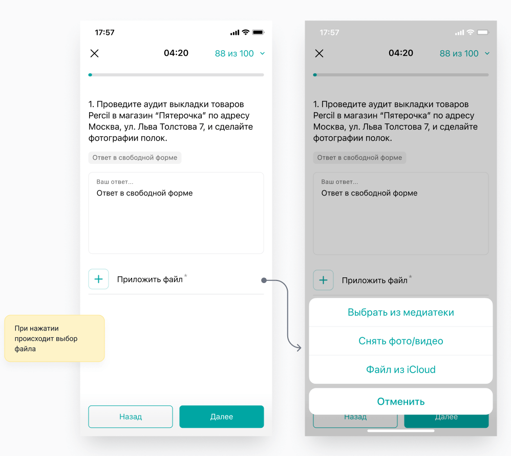 В ответе на открытый вопрос появилось форма загрузки файлов. Поддерживается как загрузка файлов из галереи, так и с камеры девайса или из файлового менеджера.