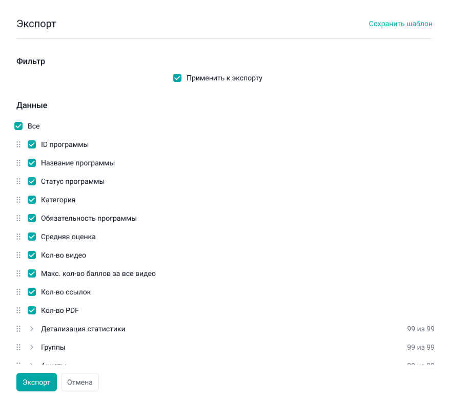 Во всех новых экспортах добавился чекбокс “Все” к основным настройкам.