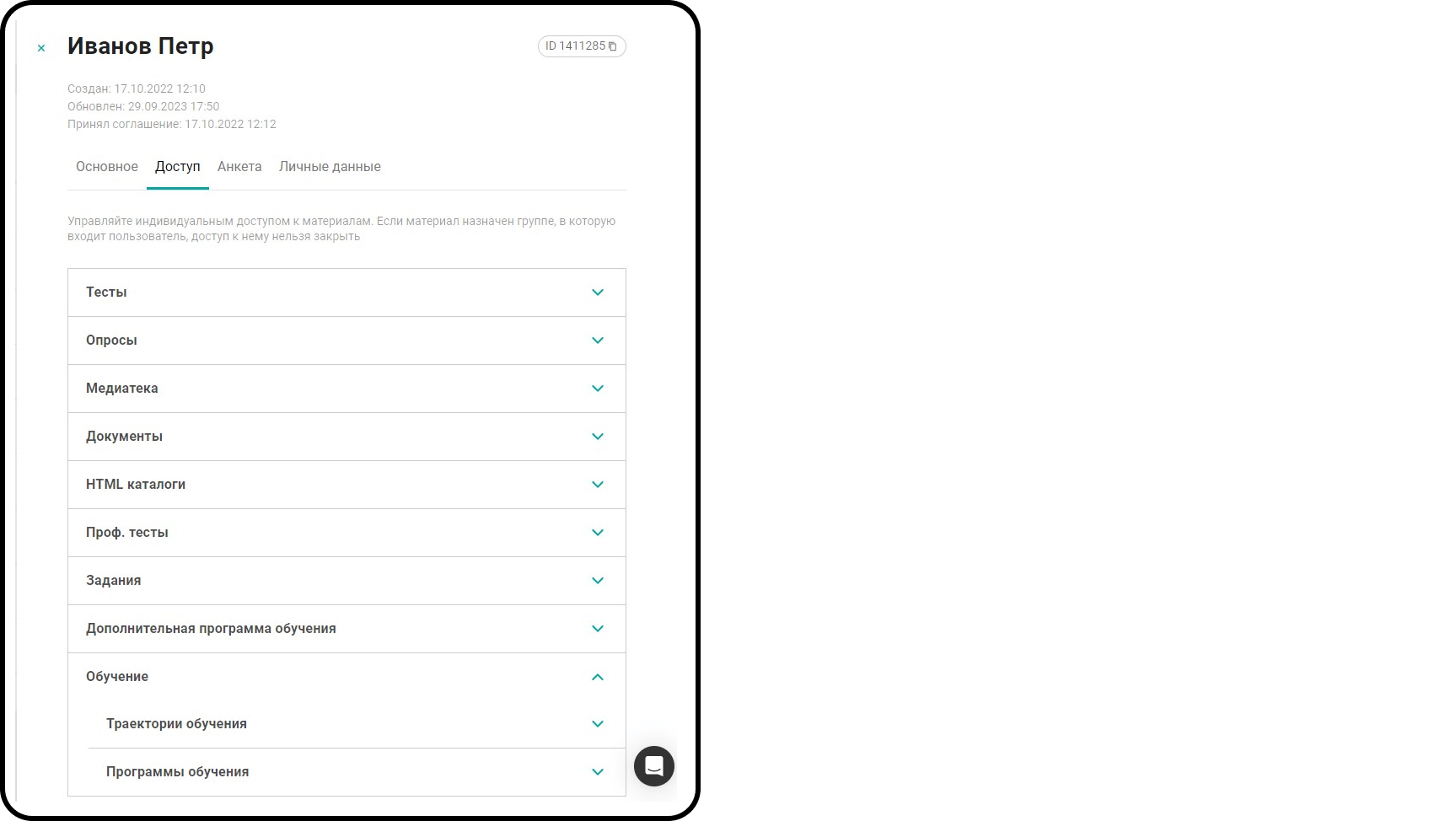 Раздел Пользователи — карточка пользователя