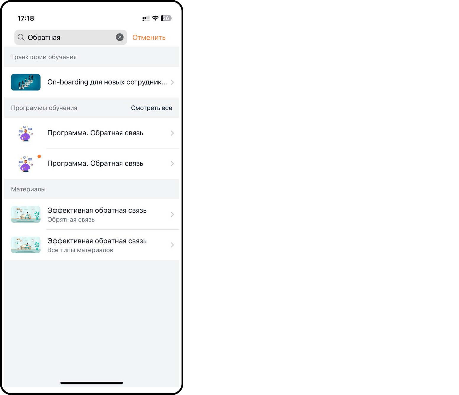 - По клику на доступную к прохождению программу осуществляется переход на страницу этой программы. Через хлебные крошки (для web) и через кнопку назад (Android, iOS) можно вернуться обратно к траектории.