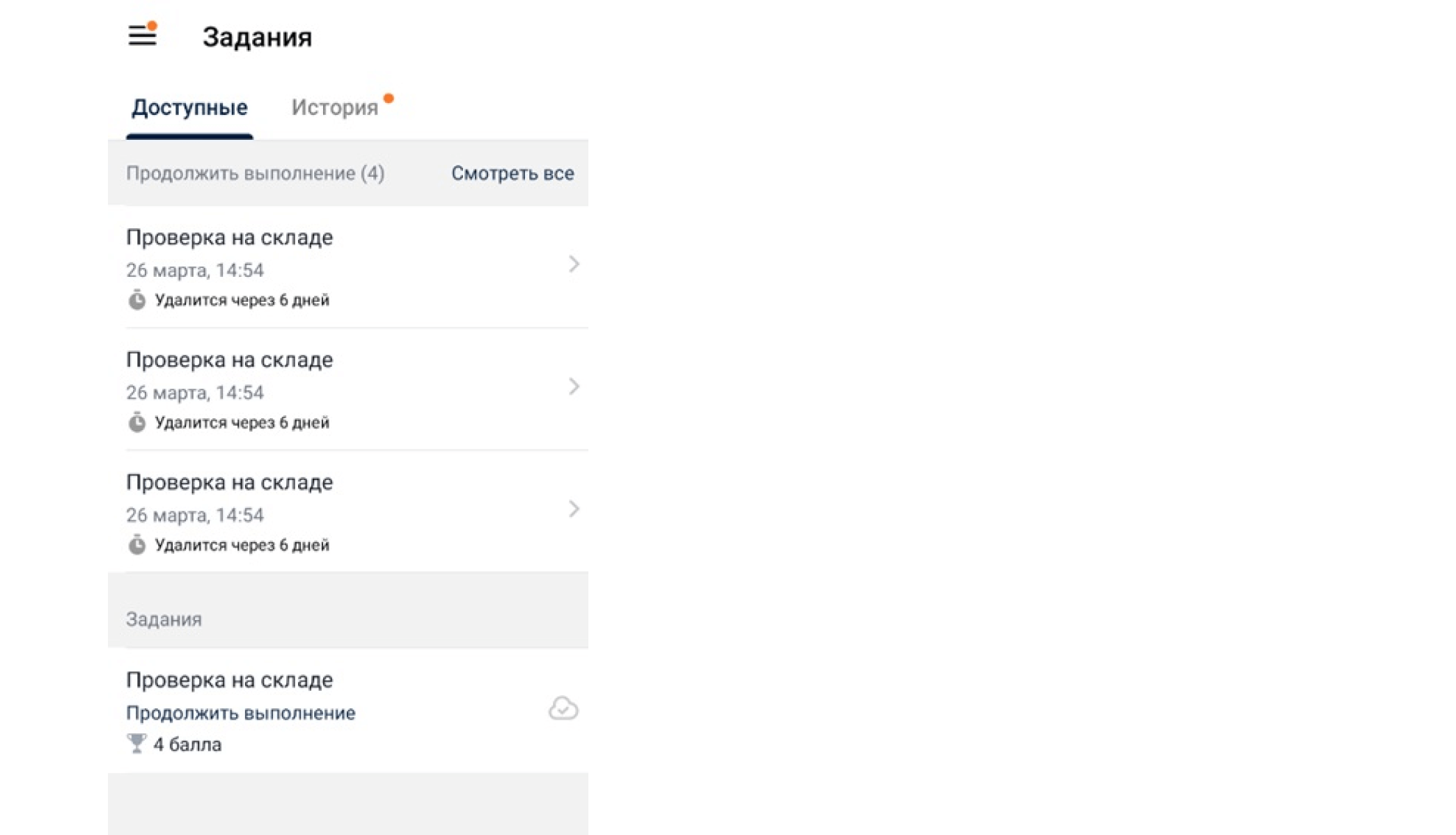 - Кому будет полезно: всем, чья работа связана с разъездами и заполнением чек-листов. Например, если сотруднику нужно посетить несколько торговых точек, он может скачать задание и заполнить чек-листы в черновики независимо от наличия интернета.