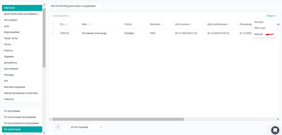 Теперь можно загружать на платформу не только программы обучения, но и статистику по траекториям обучения для каждого пользователя.
